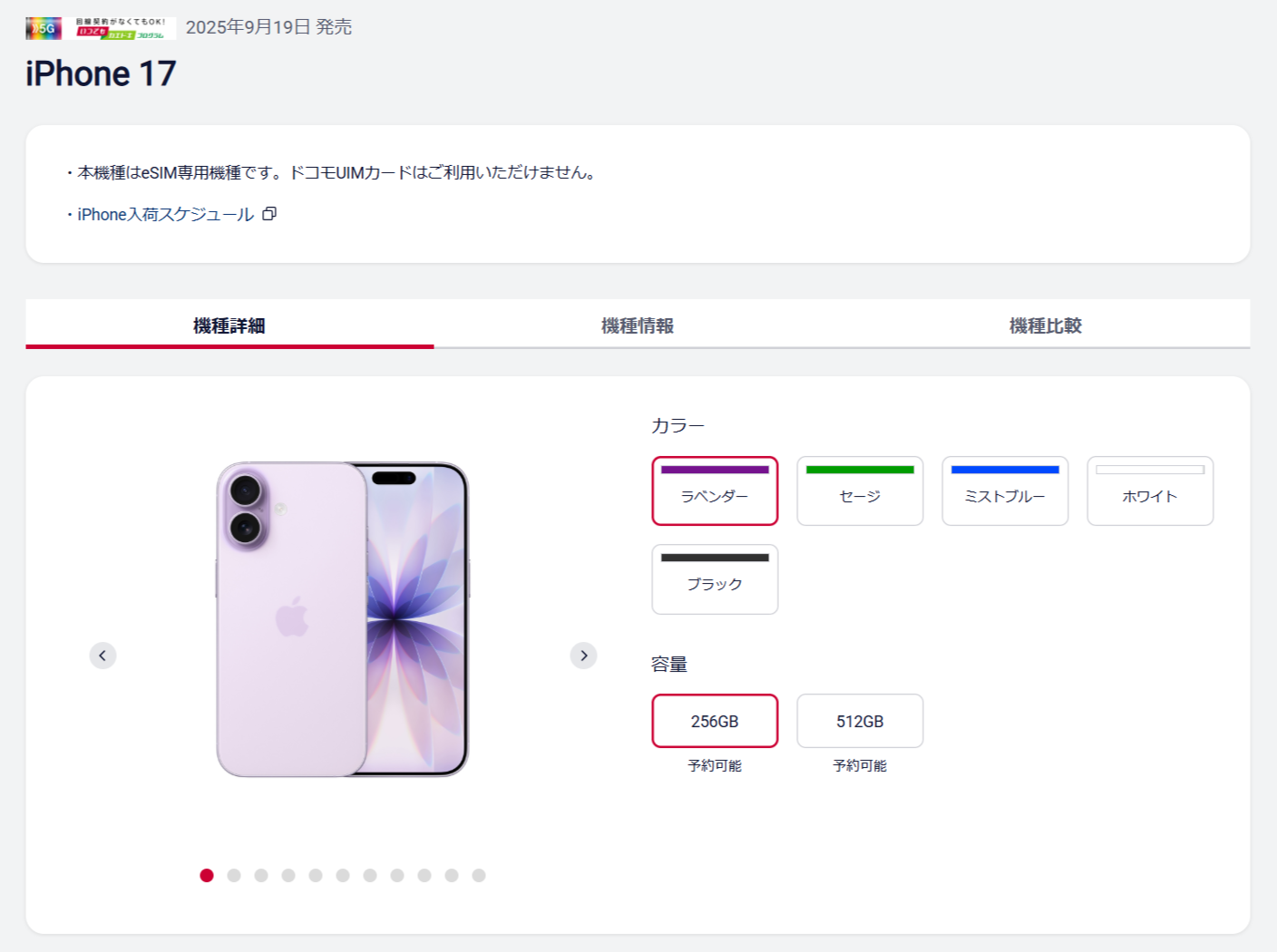 (画像引用: iPhone 17│ドコモオンラインショップ)