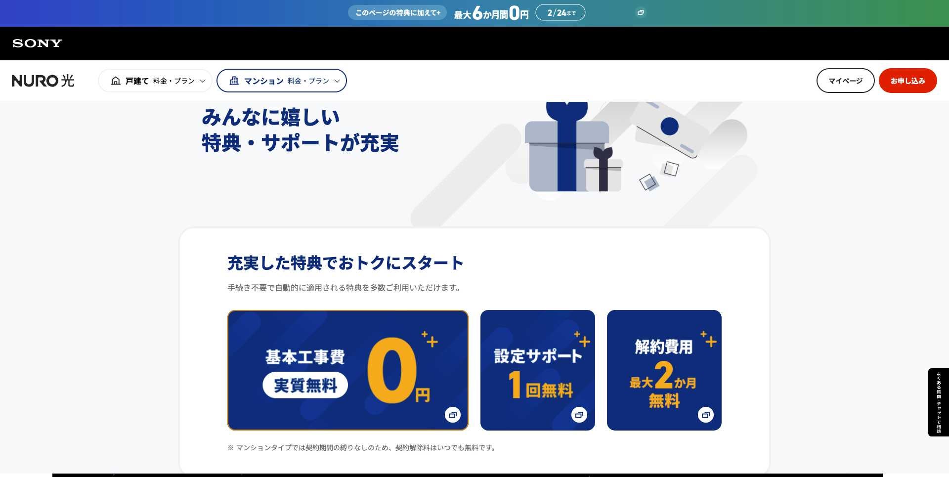 | 受けられる その他特典 | 工事費実質無料 2か月お試し特典 NUROまとめてキャッシュバック |