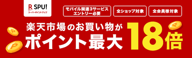 楽天モバイルユーザーは、楽天グループのポイントプログラム「SPU(スーパーポイントアップ)」の対象となるため、楽天市場などでのお買い物時に、通常よりもポイント獲得倍率がアップするので非常にお得です。